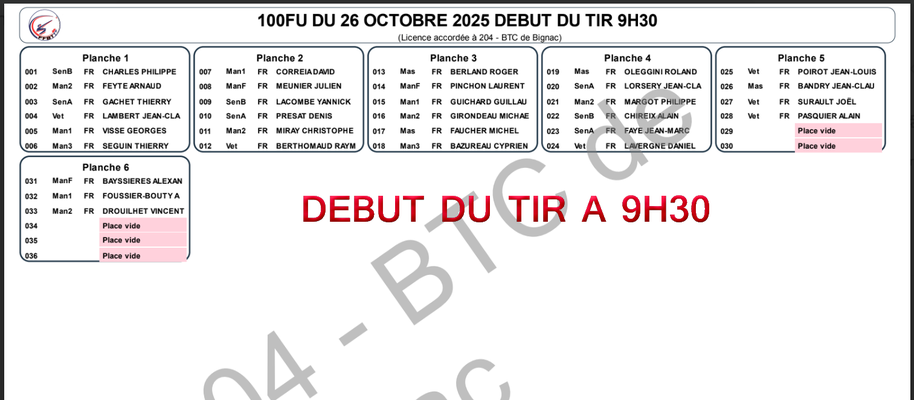 AUCUNE PLANCHE OU SÉRIES DE TIR CONCOURS LE SAMEDI